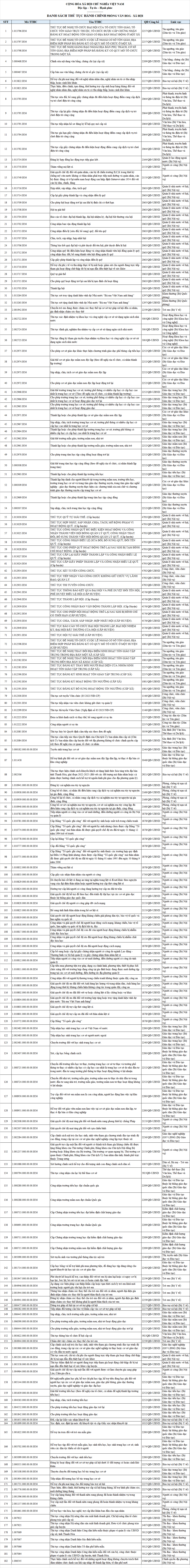 Danh sách thủ tục hành chính Phòng văn hóa -xã hội